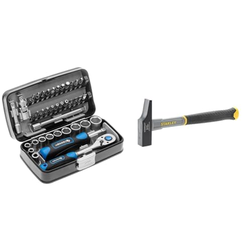 Högert HT1R462 Coffret à outils – Jeu de douilles tournevis à cliquet – Noir/bleu 1/4" & STANLEY STHT0-54159 Marteau de menuisier, Gris