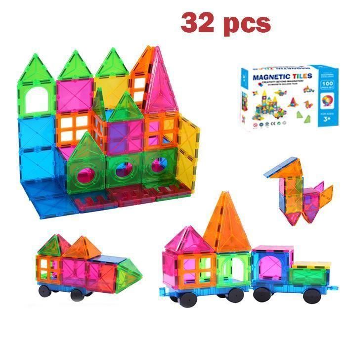 32pcs Jeu de bloc Construction Magnétique Jouet Educatif et Créatif Cadeau pour Enfant de 3ans Cadeaux Jouets à empiler pour