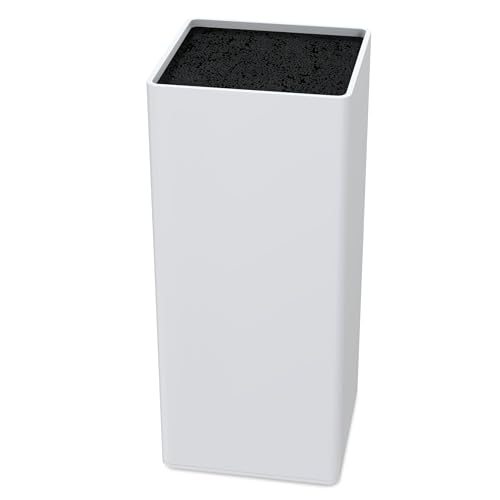 Vonsera Bloc Couteaux Cuisine, Porte Couteau Vide avec Lattes Flexibles, Universel Range Couteaux de Cuisine pour 8 Couteaux de Toutes Sortes, Blanc, 9.5 x 9.5 x 22cm