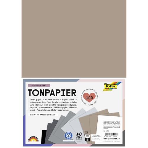 folia 6498-Papier SHADES OF GREY, DIN A4, bloc de 130 g/m² de papier d'argile, feuilles en 6 couleurs, pour bricoler, décorer et créer des objets, Paper, 100 Sheets
