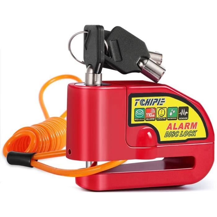 Tchipie Bloc Disque Alarme Moto Antivol Moto/Scooter Cadenas Moto/Scooter/Vélo 110dB 7mm pour Moto 125-- Cadenas Rouge
