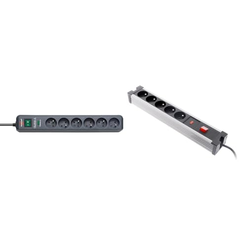 Brennenstuhl Multiprise ECO-Line Anthracite, 6 Prises, avec parasurtenseur et 1,4m de câble (13.500A) & Zenitech Bloc parafoudre 5X 16A avec Interrupteur Noir