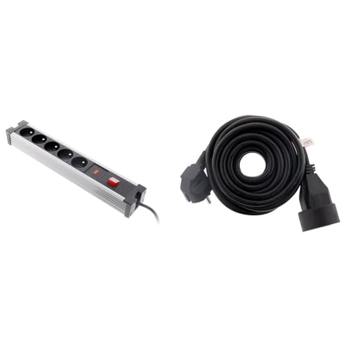 Zenitech Bloc parafoudre 5X 16A avec Interrupteur Noir & Prolongateur 16A 2P+T HO5VV-F 3G1,5mm² Noir 5m