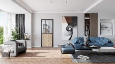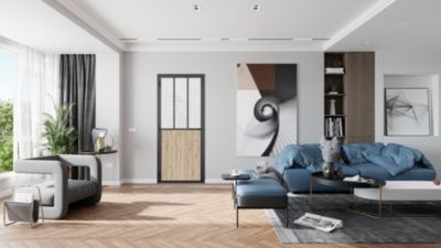 Bloc Porte Atelier H. 204 X 83 X 3 cm cadre en aluminium noir et verre transparent chêne terra Poussant Gauche