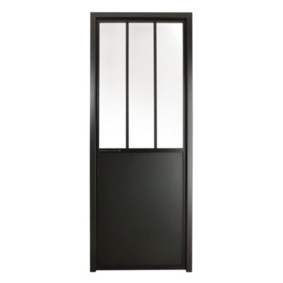 Bloc Porte Atelier H. 204 X 83 X 3 cm cadre en aluminium noir et verre transparent Poussant Gauche