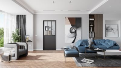 Bloc-porte atelier 3 carreaux vitrés opaques, poussant droit, coloris noir mat H.213 x l.73cm