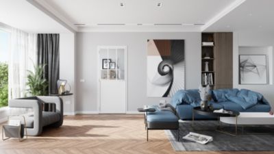 Bloc Porte Atelier H. 204 X 83 X 3 cm cadre en aluminium blanc et verre Depoli blanc Poussant Droit