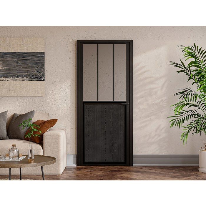 Vente Unique Bloc porte réversible en aluminium et verre trempé style atelier H204 x L83 cm Noir ERMELO