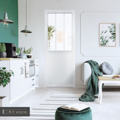 Bloc-porte atelier 3 carreaux vitrés transparents, poussant droit, coloris blanc H.213 x l.83cm