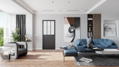 Bloc-porte atelier 3 carreaux vitrés opaques, poussant droit, coloris noir mat H.213 x l.83cm