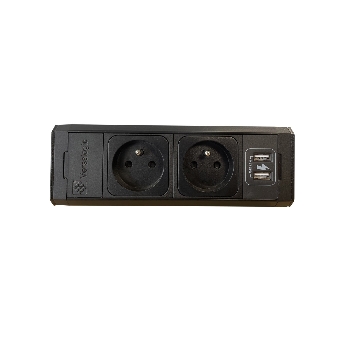 Bloc prise VersaDesk avec fixation, 2 prises électriques + 2 ports USB, câble d alimentation 3m - Noir