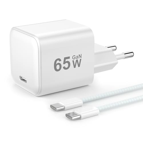YISH 65W Chargeur USB C Rapide GAN:PD3.0 Prise Secteur USB C Charge Rapide Compatible avec MacBook iPhone 17 16 15 Samsung S25 S24 Bloc Chargeurs Type C Embout Mural Alimentation, avec 1M Type C Cable