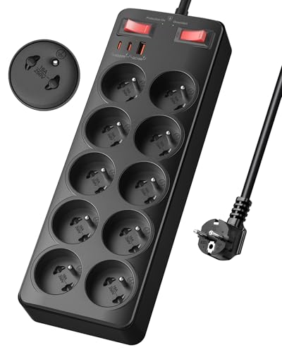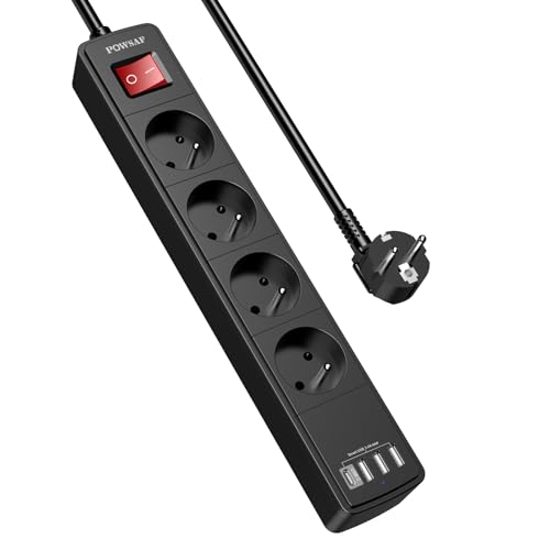 POWSAF Prise Multiple 8-en-1, Bloc de Prises Électrique 4 Prises + 4 USB, 3680W/230V, Interrupteur, pour Maison/Bureau - Noir