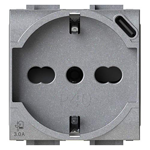 P40 USB3.0 Prise Schuko type P40 avec bloc d'alimentation USB 3 A intégré avec connecteur de type C compatible Bticino LivingLight Tech