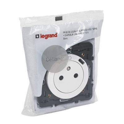 Prise Céliane + 1 prise USB-C Legrand bloc blanc