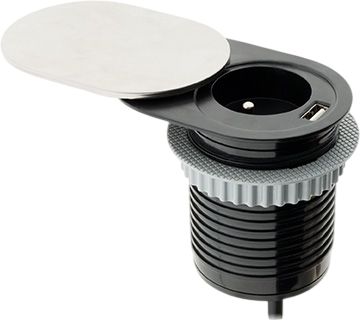 Electraline 35432 Bloc Multiprise Encastrable Compacte avec 1 Prise + 1 Port USB 2.0A Charge Rapide, pour Bureau/Table, 60 mm de diamètre, Facile a Installer, prolongateur de 2M de câble, Noir