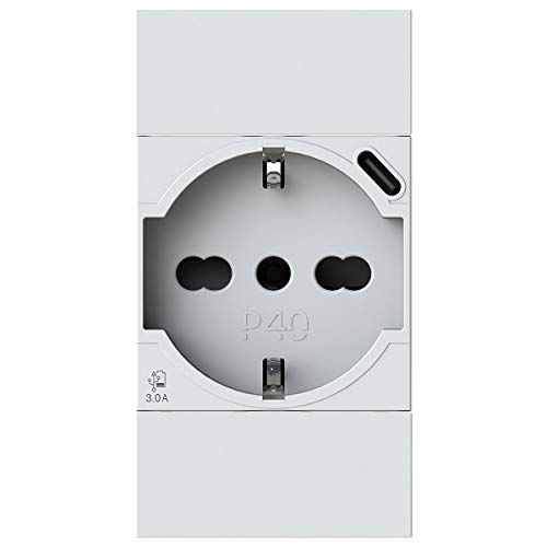 P40 USB3.0 Prise Schuko type P40 avec bloc d'alimentation USB 3 A intégré avec connecteur de type C compatible Bticino LivingLight Blanc