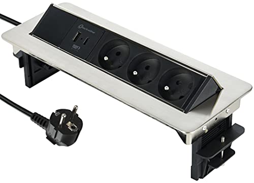 ORNO Bloc Prise Encastrable Plan de Travail, 3 Prises 3680W, Longueur de Câble: 1,8m (avec 2X USB)