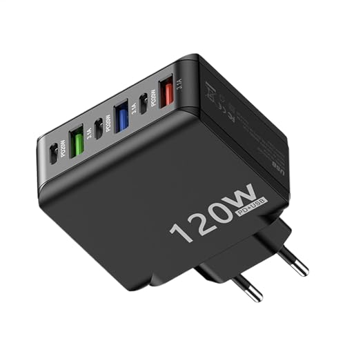 Chargeurs muraux pour téléphones Portables, Bloc de Chargeur USB C, Adaptateur de Prise Murale 120 W, Adaptateur de Prise Murale Multiport, Hub de Chargeur Mural à Charge Rapide avec 3 USB C et 3 USB