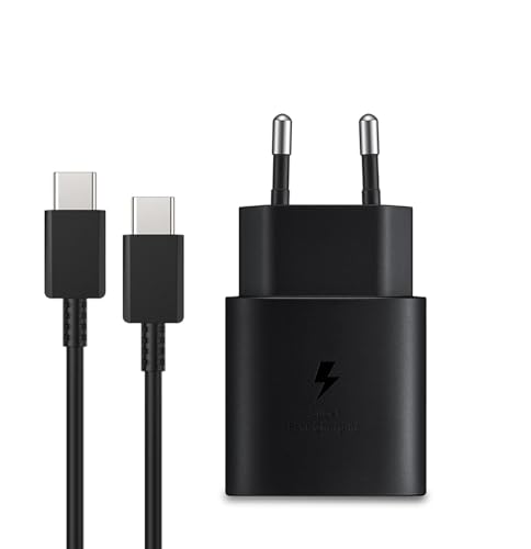 25W Chargeur Rapide pour Samsung Galaxy S24 S23 S22 S21 S20 S10 A14 A23 A34 A54 A53 Z Fold Flip 4/5, Tablette S8 Charge Rapide, Bloc USB C Adaptateur Secteur Prise avec Câble Type C (Noir)