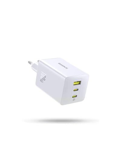 Bloc de Chargeur USB C, Chargeur Mural Rapide GaN 65 W, Prise Murale 3 Ports PD QC3.0, Adaptateur d'alimentation Compact de Type C pour Téléphone iOS pour Galaxy, Double Port USB