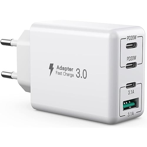 Caricatore USB C de 40 W, Bloc caricatore USB C à 4 Ports, Spina a Mur PD+QC à carica Rapide, Spina di ricarica di Type C pour iPhone 11/12/13/14/Pro Max/iPad//Android/Google/Tablet