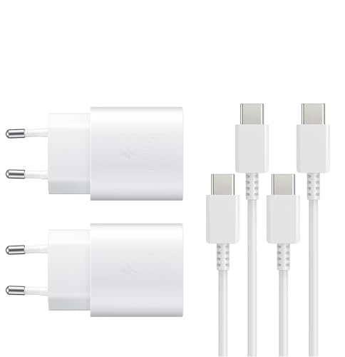 Chargeur pour Samsung Charge Rapide, 2-Pack 25W Bloc Chargeur Prise USB C pour Samsung Galaxy S24 S23 S22 S21 S20 FE/Ultra, Note 20, A71 A55 A54 A53 A34 A15 A14 M34 M53, Note10, Chargeur Telephone