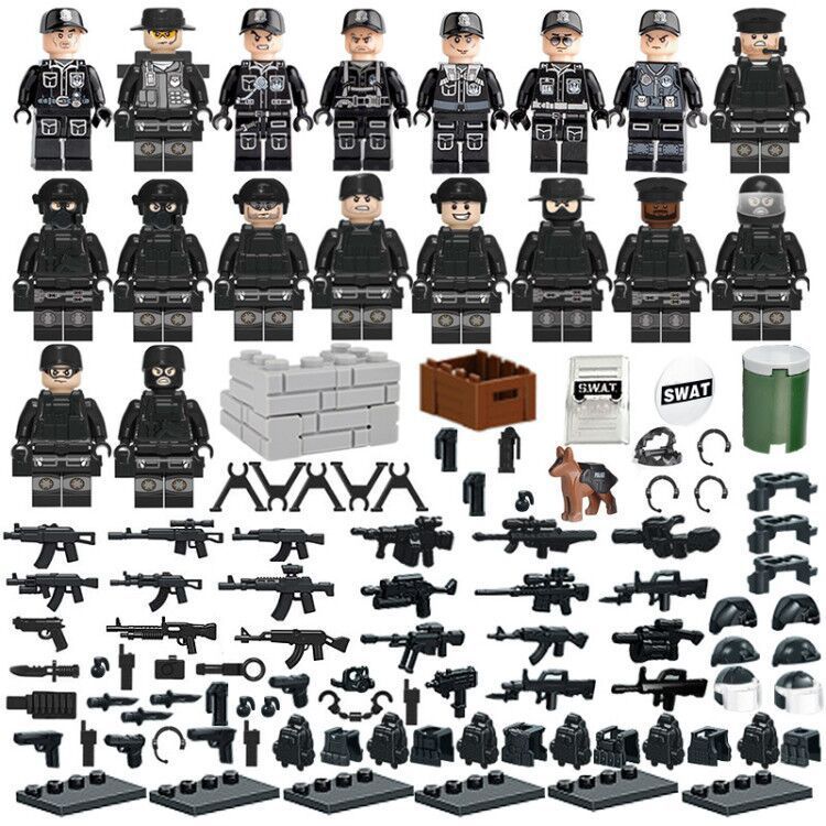 Blocs De Construction Militaires Figurines Set 18 Police Small Pellet Puzzle Block Toys