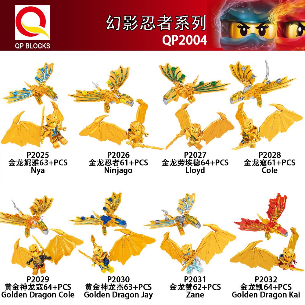 8pcs Gold Flying Ninja Building Block Figures Lloyd Small Pellet Puzzle Toys