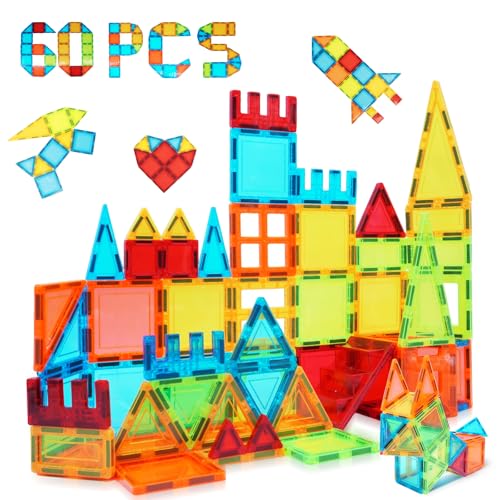 Blocs de Construction Magnétiques, 60PCS Construction magnetique Enfant, Jouets pour 3 4 5 6 7 8 Ans garçon Fille