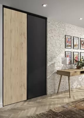 Porte de placard coulissante décor chêne et noir H.250 x l.180 cm, vendues par 2 Optimum Claustra