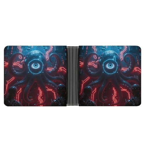 ERSTSNCK Portefeuille mécanique yeux de pieuvre pour homme - Double volet - Bloque les RFID - Pince à billets - Poche avant - Porte-cartes