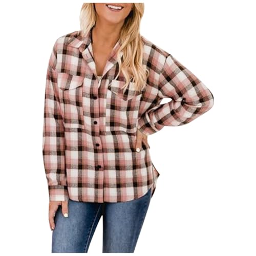 Chemisier Femme Grande Taille, Blouse Femme, Chemises À Carreauxs Vêtements d'automne Surdimensionnés Veste À Carreaux À Manches Longues Chemises Boutonnées Chemisier À La Mode (XL)