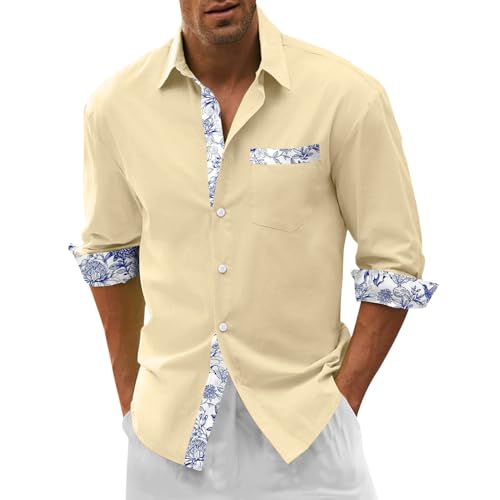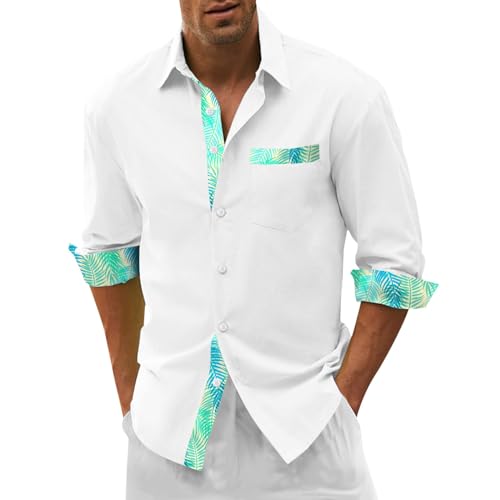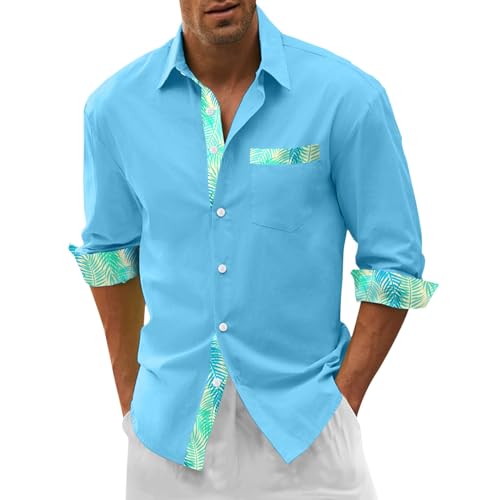 Chemise Hawaienne Homme Manches Longues, Blouse De Travail Homme Boutonnées,T-Shirts Homme LéGèRe Casual Respirante Top Ample Poches d'impression Regular Haut Business Mode Tunique Plage De Vacances