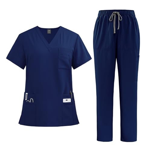 Tenue Infirmiere Uniformes Vêtements de travail for infirmières Ensembles blouses for femmes Combinaisons chirurgicales Salopettes d'hôpital laboratoire salon beauté Spa(Blue,XX-Large)