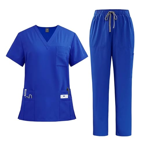 Tenue Infirmiere Ensemble de blouses médicales extensibles avec poches, pantalon, uniforme d'infirmière, salopette médecin, vêtements travail for salon beauté(Royal blue,XX-Large)