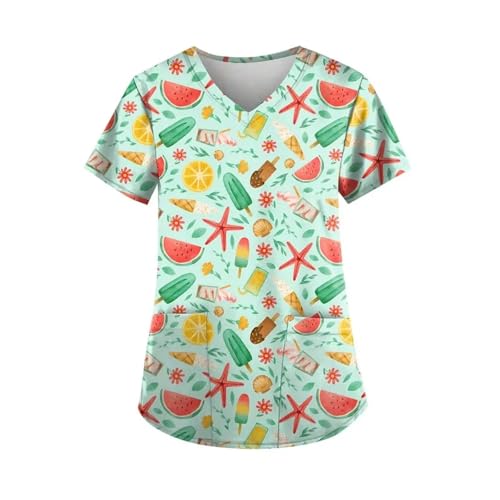 Uniforme D'InfirmièRe Uniforme d'infirmière for femmes, imprimés de motifs amusants, microélastique, médical pédiatrique, col en v, manches courtes, blouses chirurgicales for femmes Travail Blouse Inf