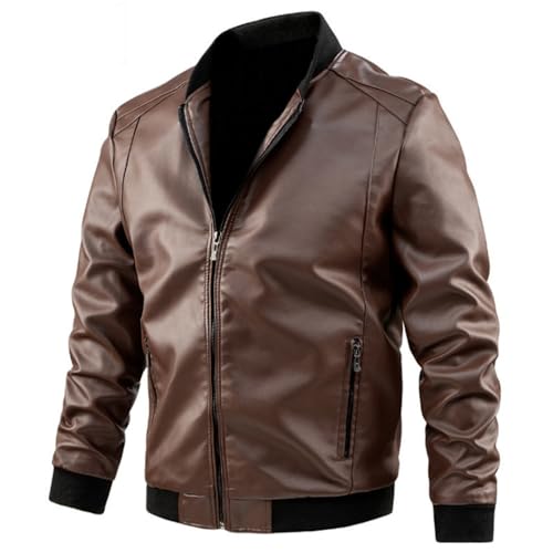 Blouson Bomber en Cuir Marron Hommes Vintage Manteau De Moto Veste en Daim Couleur Pure Imitation Faux Cuir Manteau Veste Coupe-Vent Casual Biker Manteau Sports De Plein Air pour M-XXL,XL