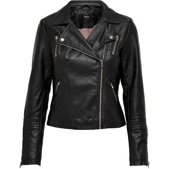 Blouson de motard - ONLY - Fermeture éclair asymétrique - Similicuir - Détails matelassés - Noir