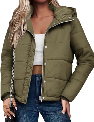 Zeagoo Blouson doudoune femme chaud hiver capuche poches fermeture éclair veste matelassée légère isolante coupe vent usage quotidien et extérieur Vert XXL