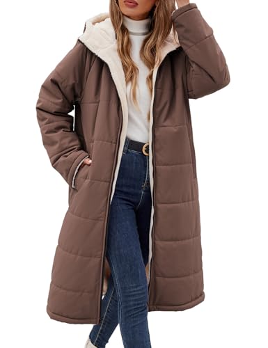 Tuopuda Manteaux Femme Blouson Automne Hiver Doudoune Doublure en Peluche à Manches Longues Epaissé Vêtement d'extérieur d'hiver Rembourré Coupe-Vent Idee Cadeau, Brun, S