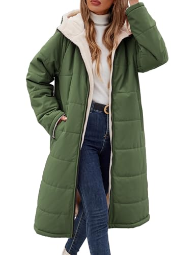 Tuopuda Manteaux Femme Blouson Automne Hiver Doudoune Doublure en Peluche à Manches Longues Epaissé Vêtement d'extérieur d'hiver Rembourré Coupe-Vent Idee Cadeau, vert armée, M