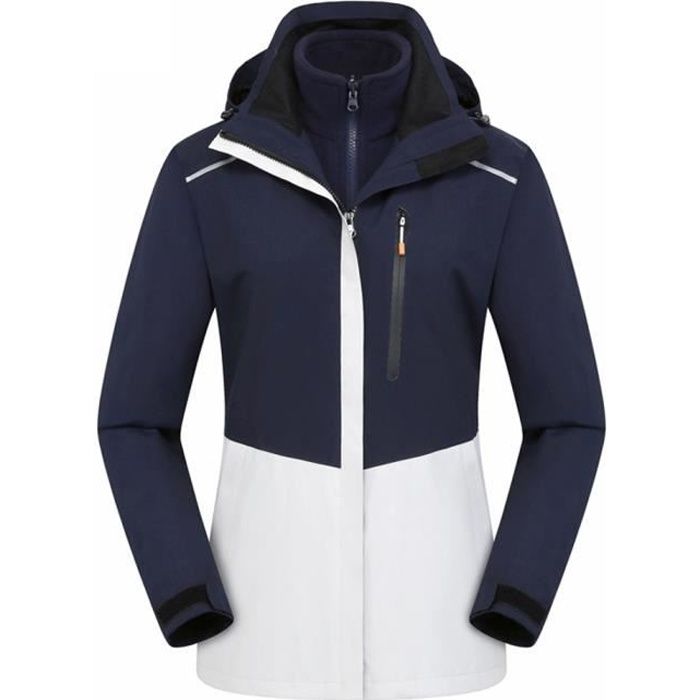 Blouson de Ski Femme - HUGO - 3 en 1 Imperméable A Capuche - Bleu marine