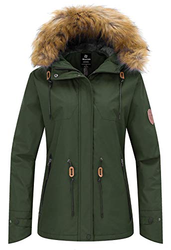Wantdo Femme Blouson de Ski Hiver Imperméable Veste Isolant Chaude Veste de Sport Voyage avec Capuche Amovible Veste de Snowboard Parka Montagne Vert XL