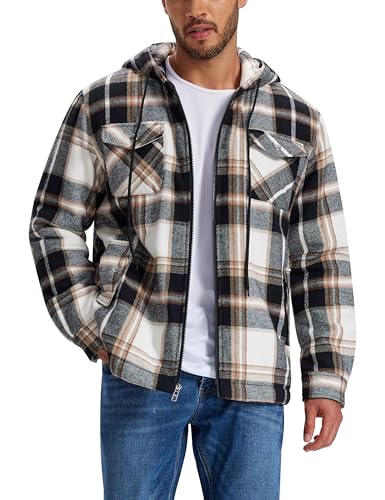MoFiz Homme Veste Chemise Flanelle à Carreaux Doublée Chaude Blouson d'hiver Coton Chemise de Bûcheron Travail Manches Longues avec Capuche et Cinq Poches Marron Noir EU XL