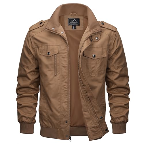 MAGCOMSEN Blouson Cargo Militaire pour Homme Léger Coupe-vent en Coton Multipoches Mi-saison avec Col Rabattu et Zippe Khaki S