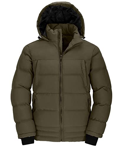 Wantdo Homme Manteau d'hiver Chaud Coupe-Vent Veste à Capuche Manteau Rembourré en Coton Veste Matelassée Veste Doublée en Flanelle Puffer Blouson Vert Militaire L