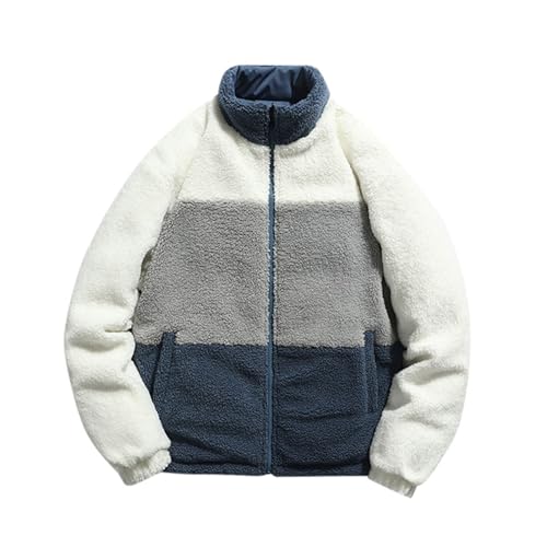 Blouson Homme Hiver Chaud - en Laine mélangée pour Homme Veste colorée avec col Montant Ample et Polyvalent Veste de Ski et de Neige Chaude (Blue XXXL)