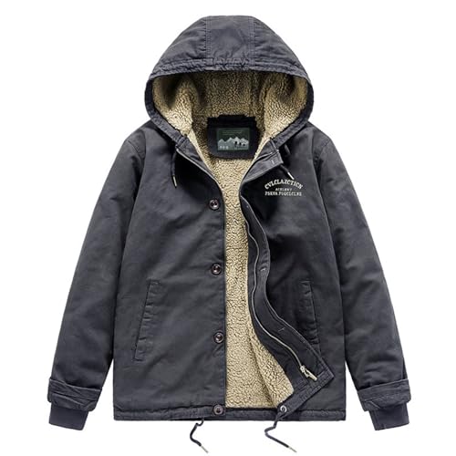Générique Blouson Hiver - Veste Chaude Homme Hiver Veste matelassée à Capuche de Grande Taille en Laine d'agneau pour Hommes Automne et Hiver avec Salopette en Laine Veste matelassée (Dark Gray XXXL)