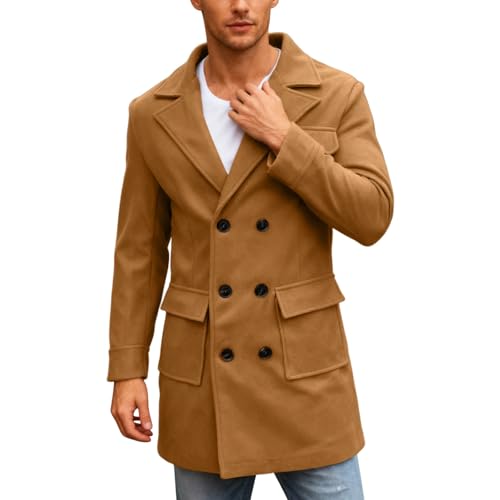 Bastwahl Manteaux Homme d'hiver - Hiver en Laine Chaud Épaissir Mi-Long Manteau Blouson Slim Fit Classique Revers en Laine Décontracté Confortables Peacoat Pardessus pour Affaires